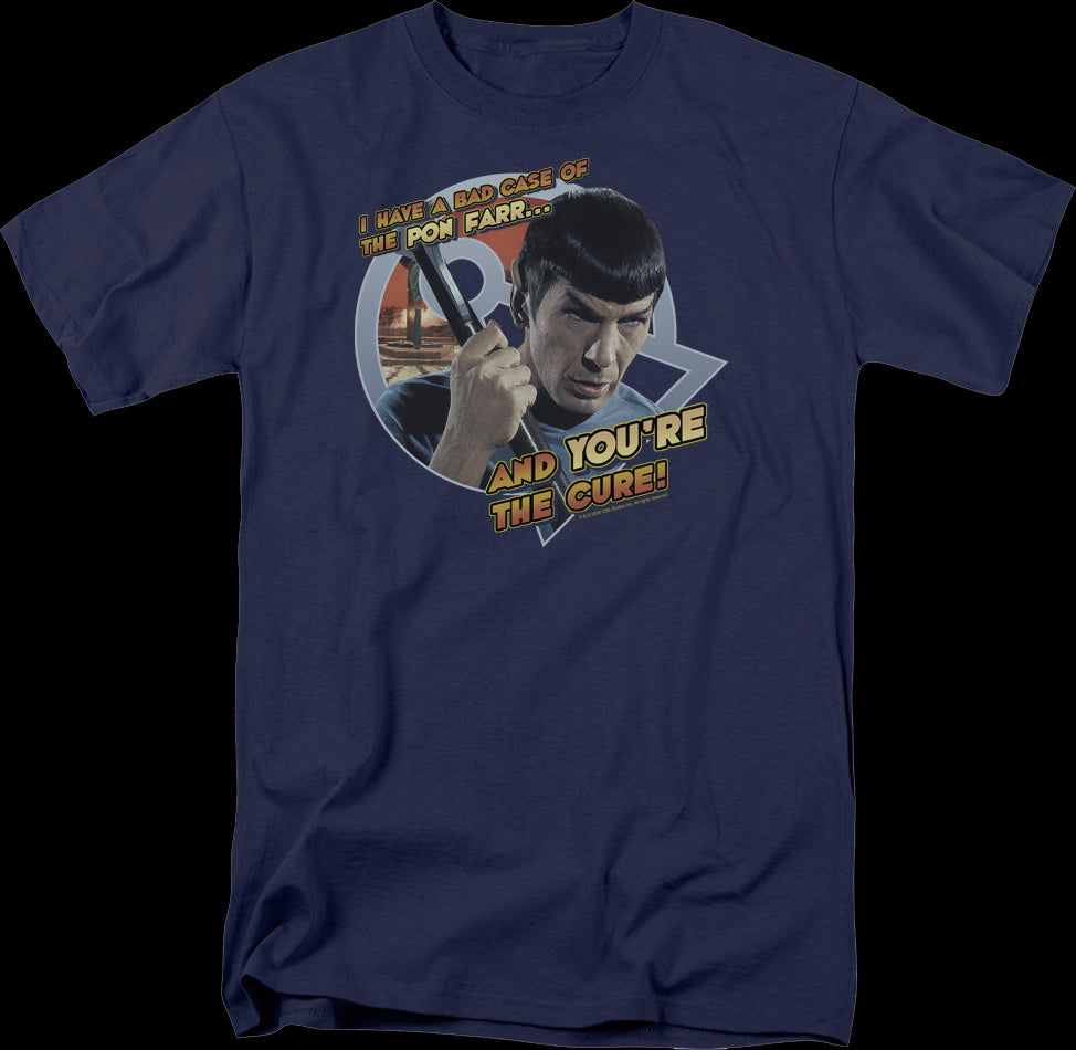 This Star Trek t-shirt features an image of Spock. The shirt reads I Have A Bad Case Of Pon Farr...And You're The Cure!