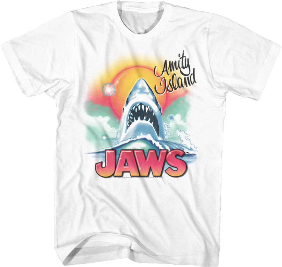 This fish, swallowed nearly the entire island whole. Now, you can show that you are a fan of the 1975 classic Jaws with this Airbrush Jaws t-shirt!