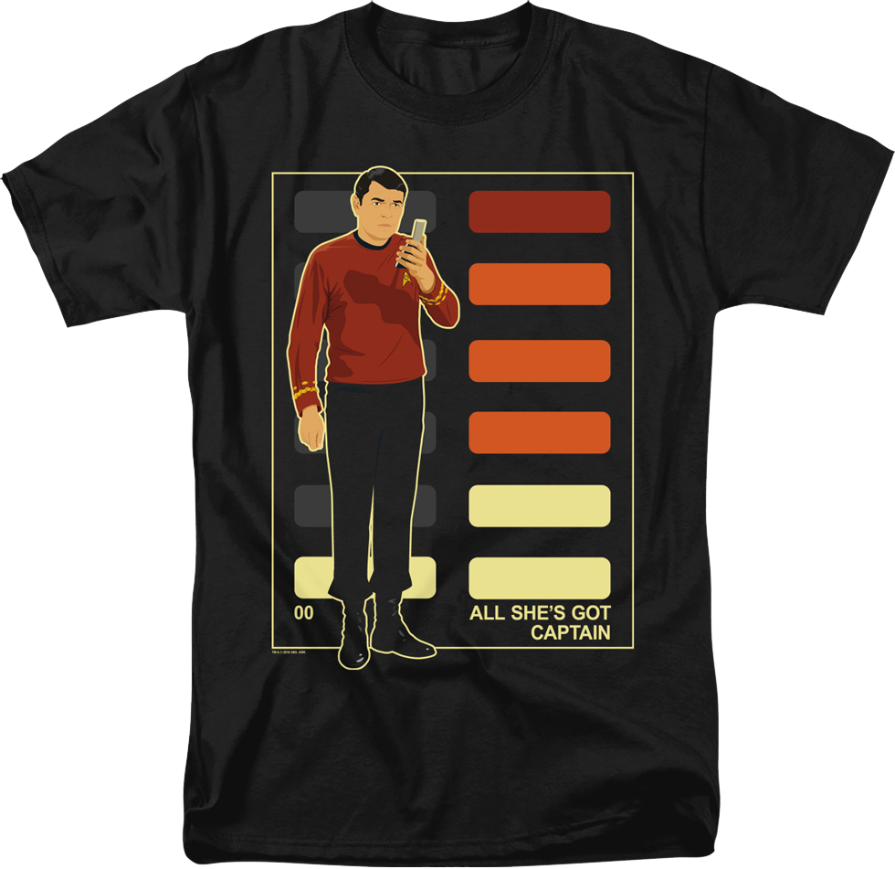 Now you can show everyone you're a fan of Lt. Commander Scott with this All She's Got Star Trek T-Shirt!