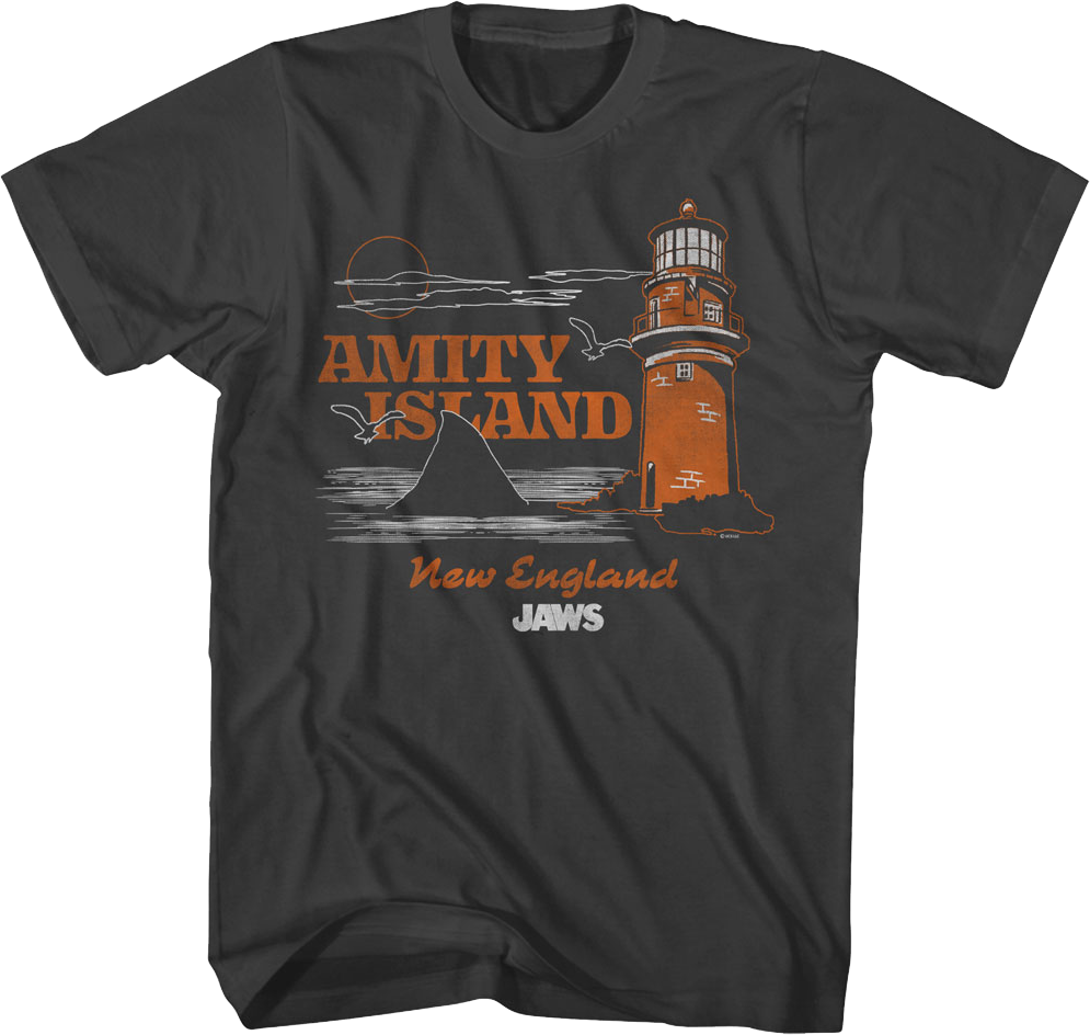 Everyone will know you are a fan of Steven Spielberg's 1975 classic when you wear this Amity Island Lighthouse Jaws T-Shirt!