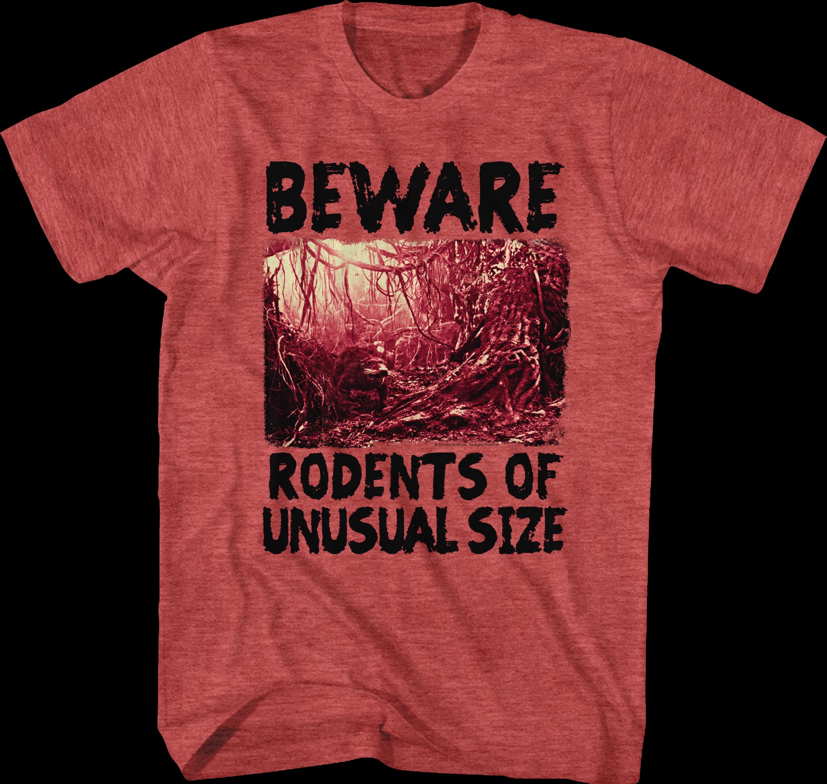 For any fan of the 1987 classic The Princess Bride, this Beware Rodents Of Unusual Size t-shirt is a must have!