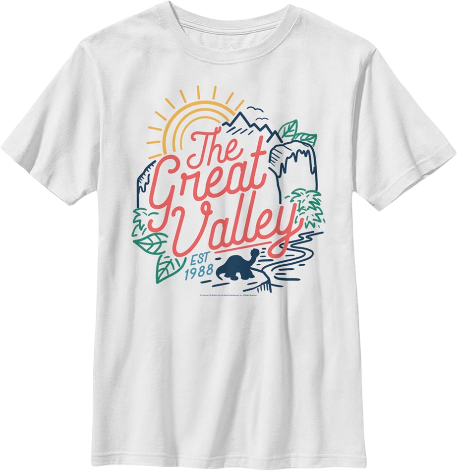 In The Land Before Time, Littlefoot sets off in search of the legendary Great Valley, a land of lush vegetation where the dinosaurs can thrive and live in peace. Along the way he meets other young dinosaurs, and they encounter several obstacles as they learn to work together in order to survive. For any young fan of the 1988 animated classic, this Boys Youth The Great Valley Land Before Time Shirt is a must have!