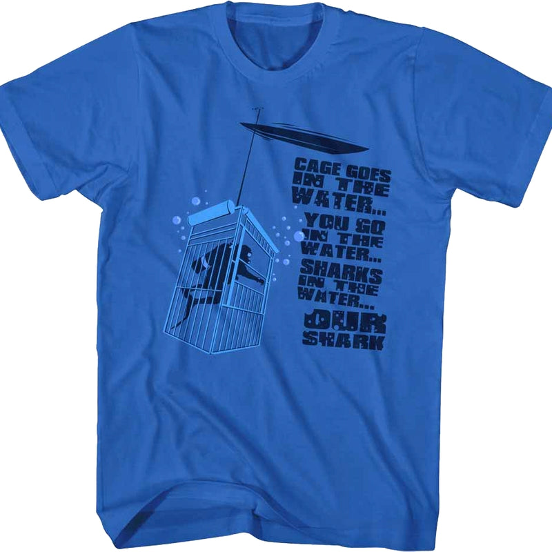 For any fan of Steven Spielberg's 1975 classic starring Roy Scheider, Richard Dreyfuss and Robert Shaw, this Cage Goes In The Water Jaws T-Shirt is a must have!