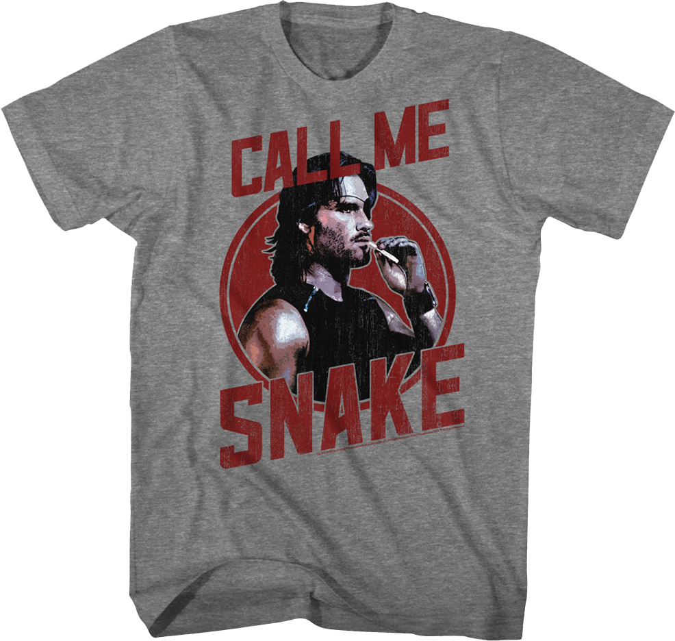 This Escape From New York t-shirt features an image of Kurt Russell as Snake Plissken. The shirt reads Call Me Snake.
