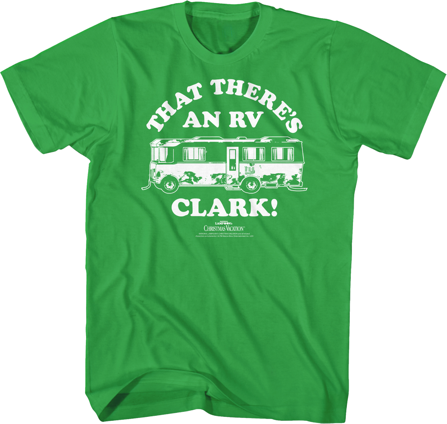 This Christmas Vacation shirt features an image of Cousin Eddie's RV and his quote "That There's An RV Clark!" Cousin Eddie drained this RV's shitter and said, "Merry Christmas, shitter was full" to Clark's yuppie neighbor.