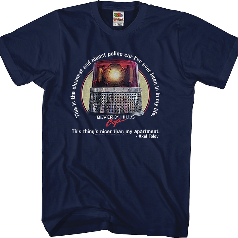 This Beverly Hills Cop t-shirt features a police siren and the Axel Foley quote, "This is the cleanest and nices police car I've ever been in in my life. This thing's nicer than my apartment".