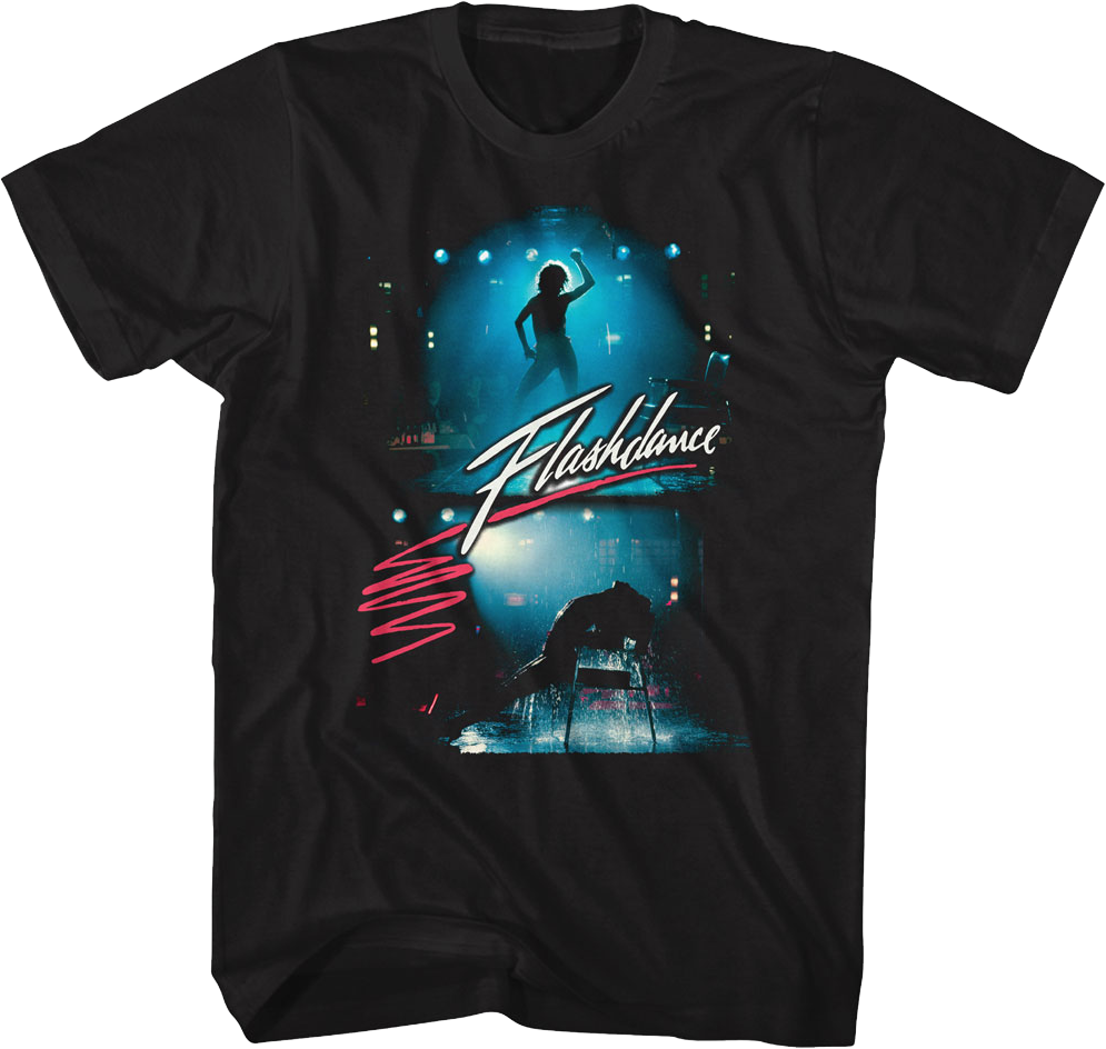 This Flashdance t-shirt features silhouettes of Alex Owens dancing and pouring water on herself at her neighborhood bar.