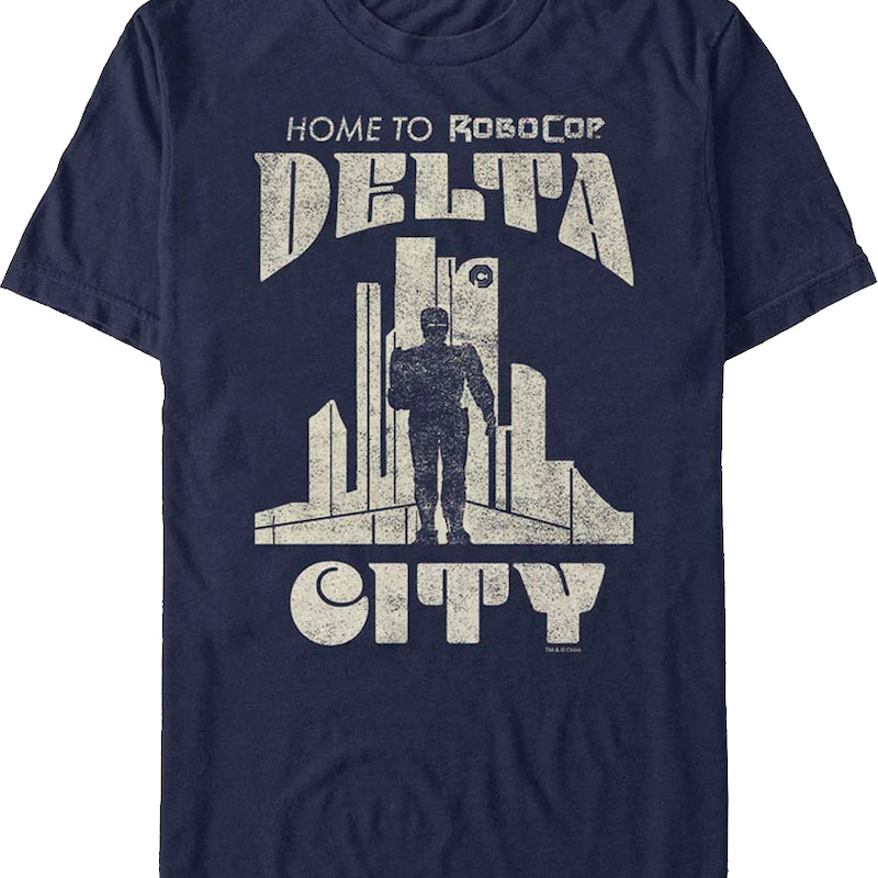 This Robocop t-shirt shows a silhouette of Robocop in Delta City.
