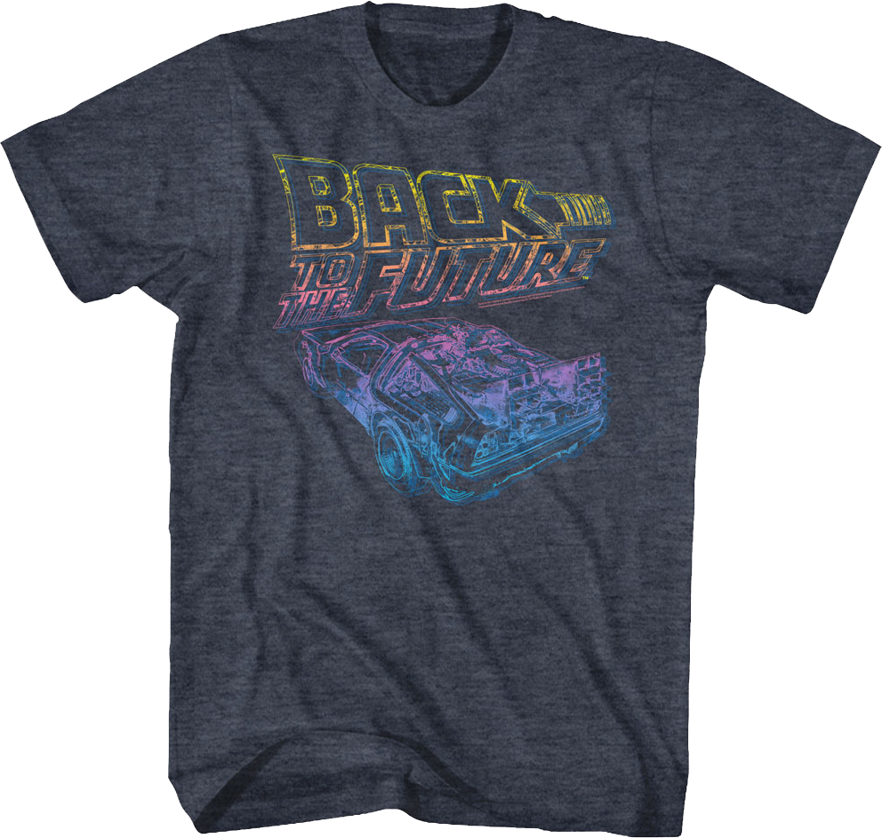 Doc Brown's DeLorean is one of the most iconic cars in cinematic history. Everyone will know you are a fan of the time machine with some style when you wear this Distressed Neon Logo And DeLorean Back To The Future T-Shirt!