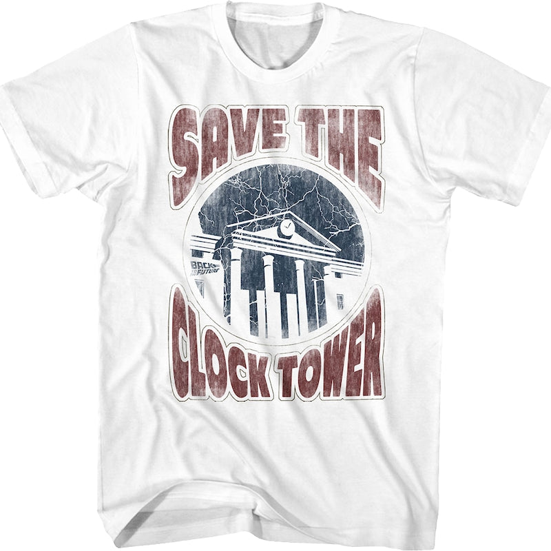 Distressed White Save The Clock Tower Back To The Future T-Shirt