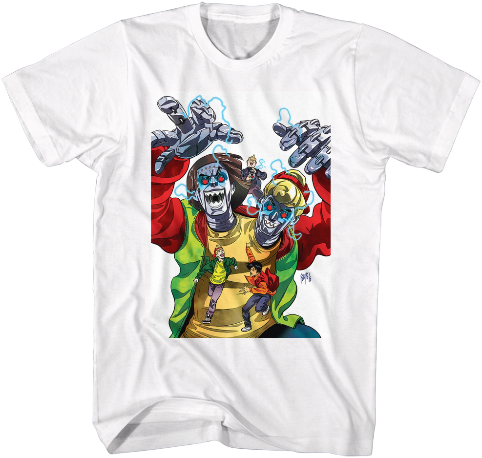 This Bill and Ted's Bogus Journey t-shirt shows evil android versions of Bill and Ted chasing the real Wyld Stallyns.