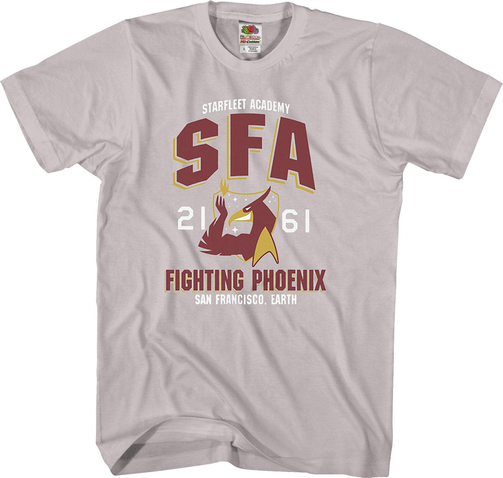 This Star Trek t-shirt features the Starfleet Academy's mascot, the Fighting Phoenix, and the shirt looks like it is designed for a college football team.