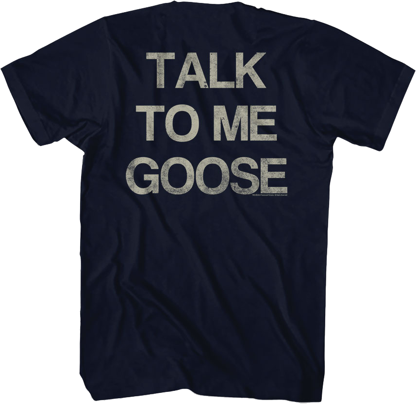 Everyone will immediately know that you are a fan of the 1986 classic movie starring Tom Cruise and Anthony Edwards when you wear this Front & Back Talk To Me Goose Top Gun T-Shirt!