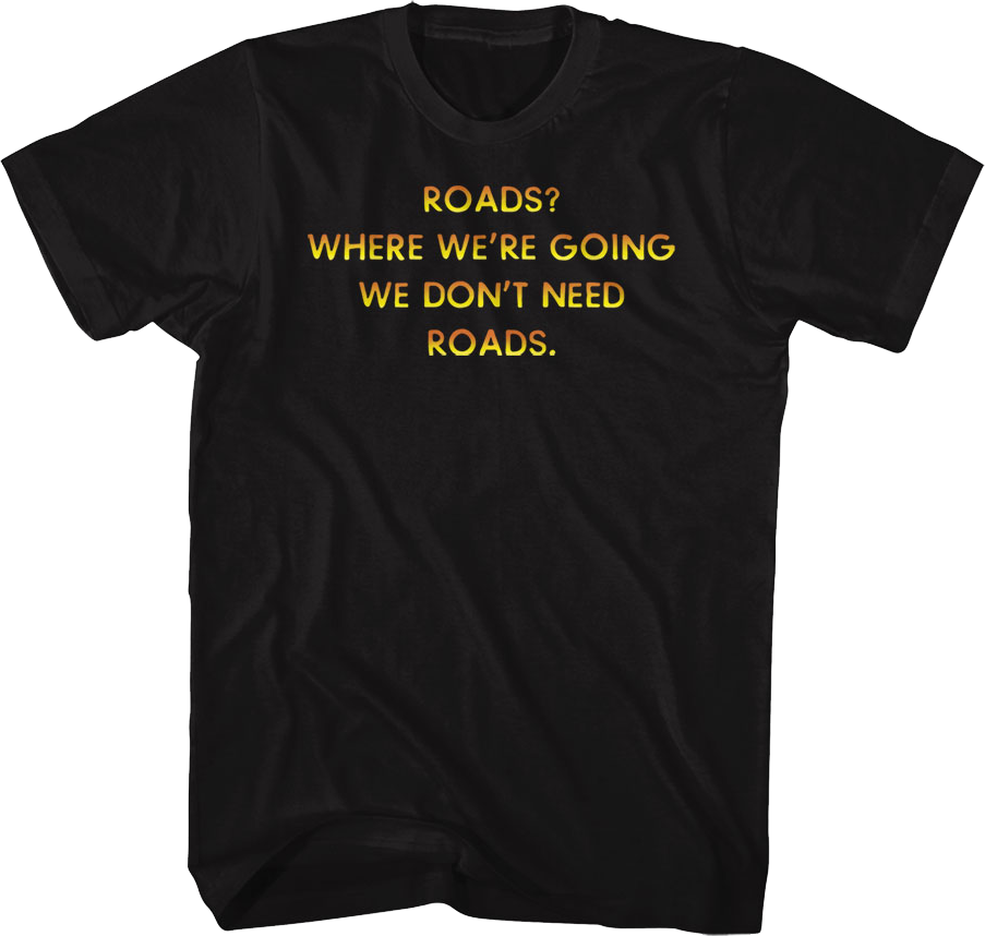 For any fan of the 1985 classic starring Michael J. Fox and Christopher Lloyd, this Front & Back We Don't Need Roads Back To The Future T-Shirt is a must have!