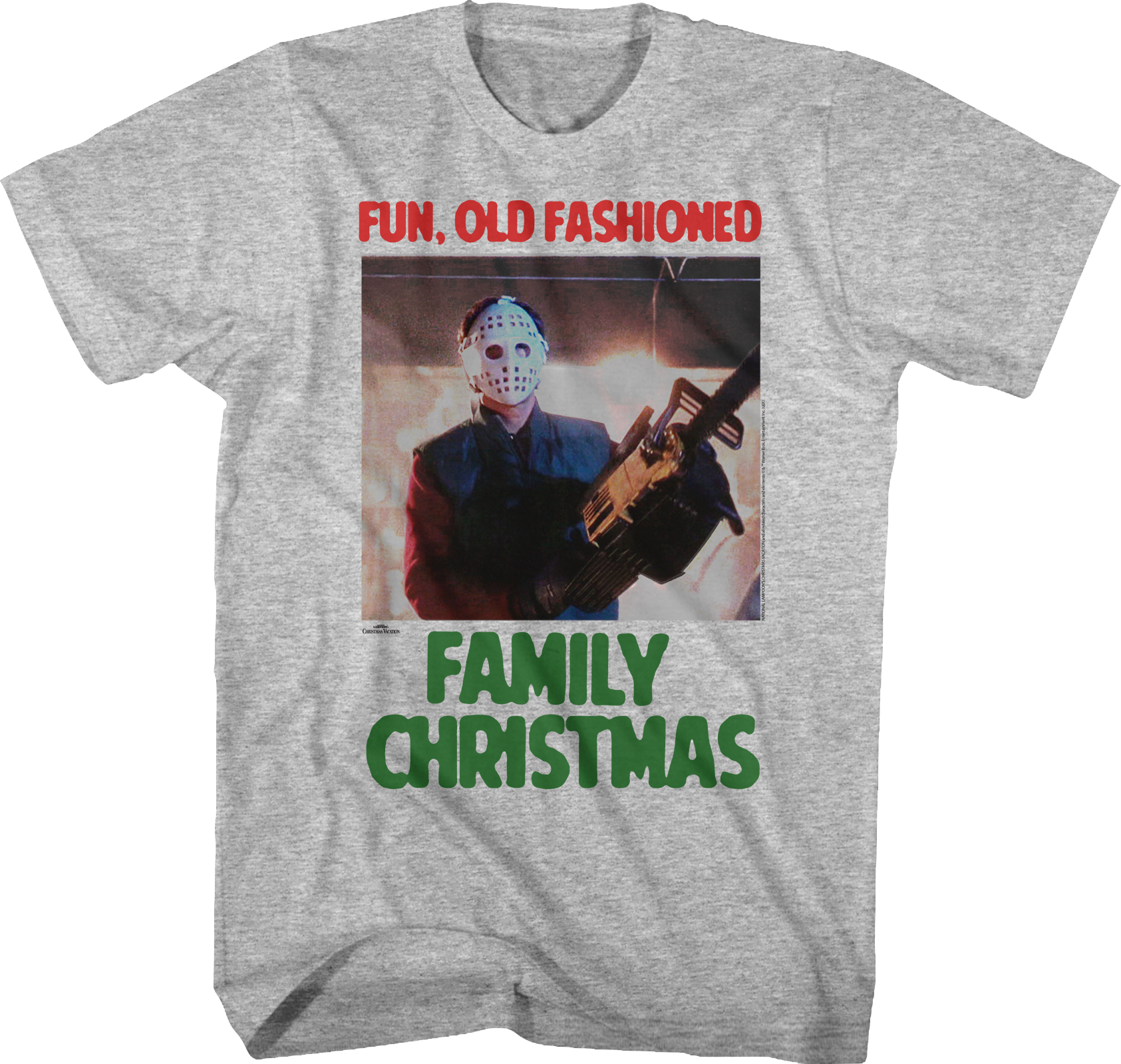 The Griswold family kicked off their fun, old fashioned family Christmas by heading out into the country in the old front-wheel drive sleigh to embrace the frosty majesty of the winter landscape and select that most important of Christmas symbols, a tree. When Clark Griswold realized he forgot to take a saw, the tree had to be pulled up by the roots. When Clark got home, he emerged from his garage looking like Jason Voorhees, with a hockey mask and chainsaw to cut up the tree.