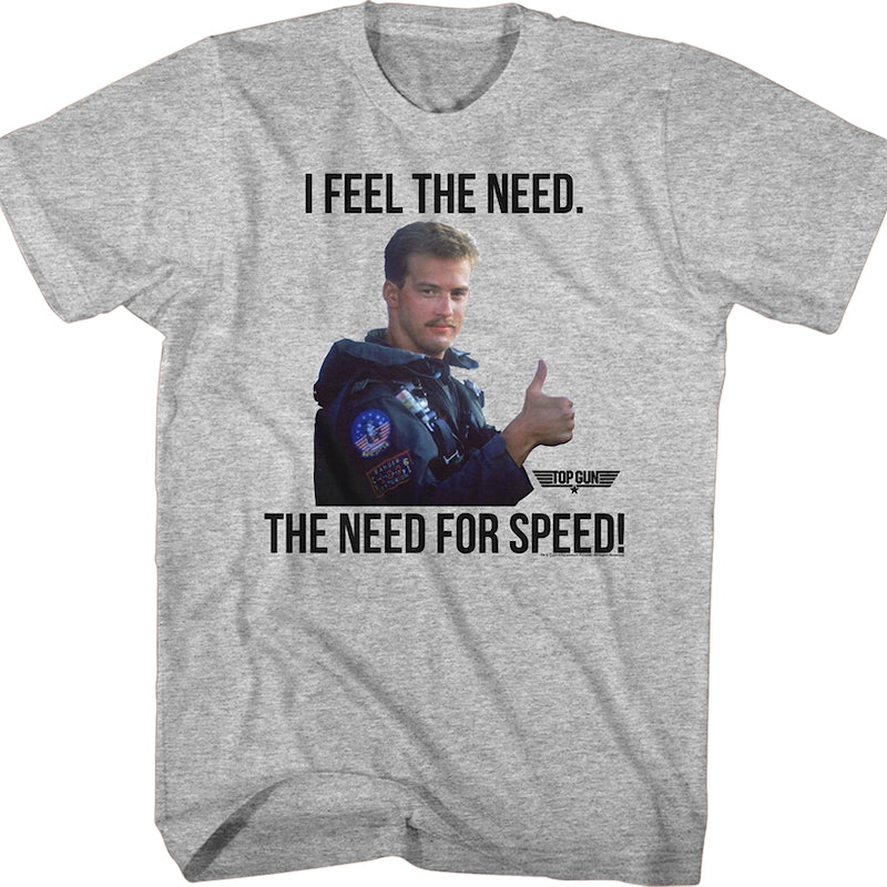 Everyone's favorite co-pilot is featured on the shirt giving a thumbs up. For any fan of the movie that started the bromance, this Goose The Need For Speed Top Gun T-Shirt is a must have!