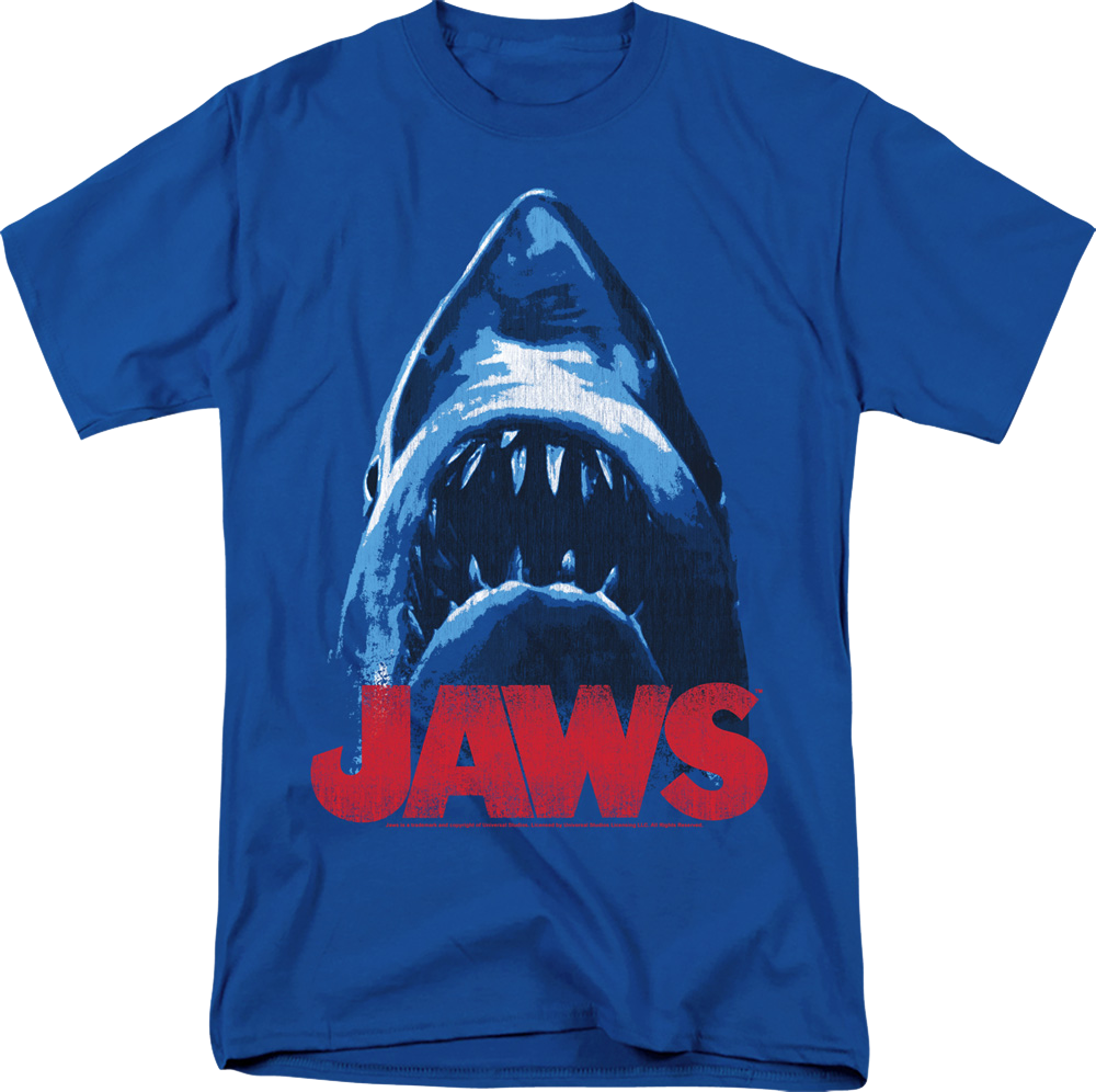 For any fan of Steven Spielberg's terrifying 1975 classic, this Great White Attack Jaws T-Shirt is a must have!