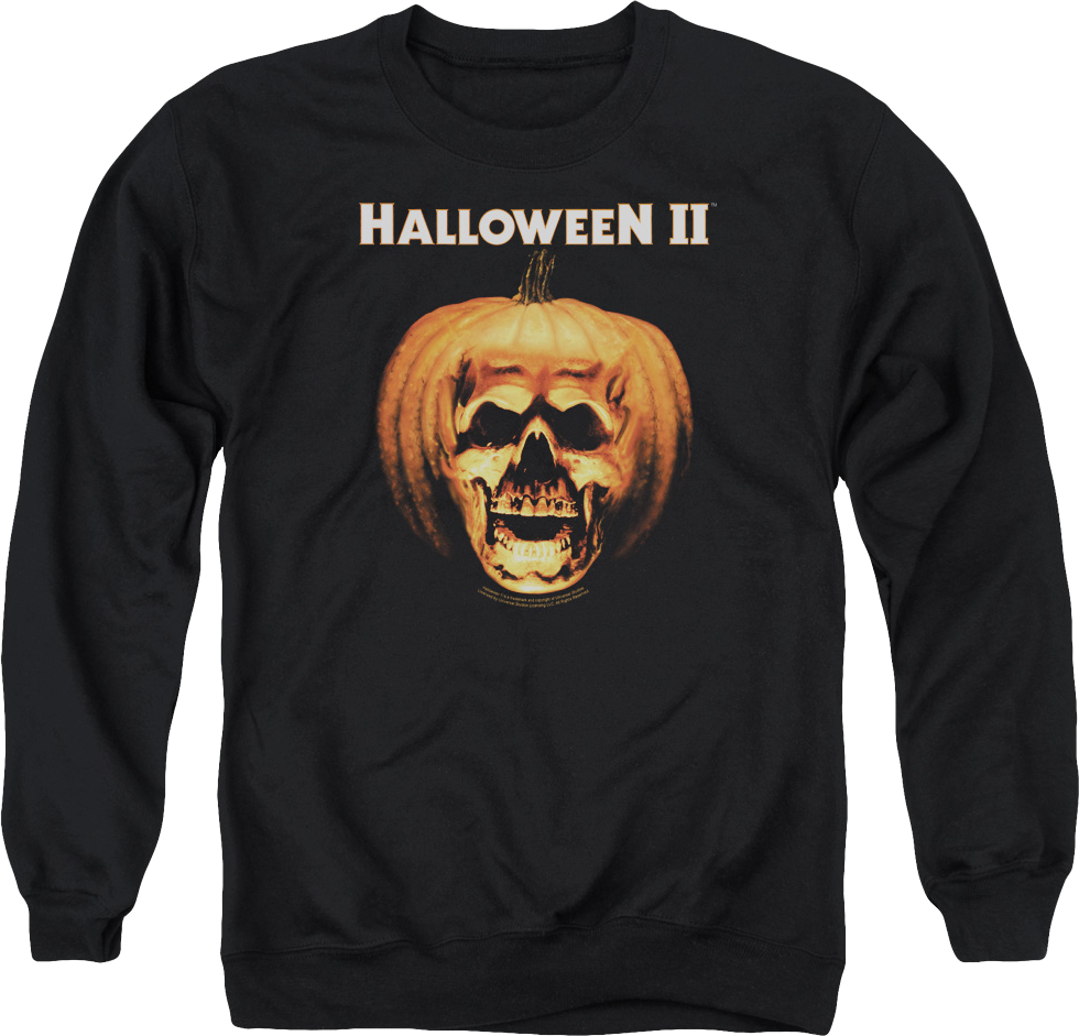 This Halloween II sweatshirt shows the skull in a pumpkin that appeared in the opening credits of the 1981 horror classic.