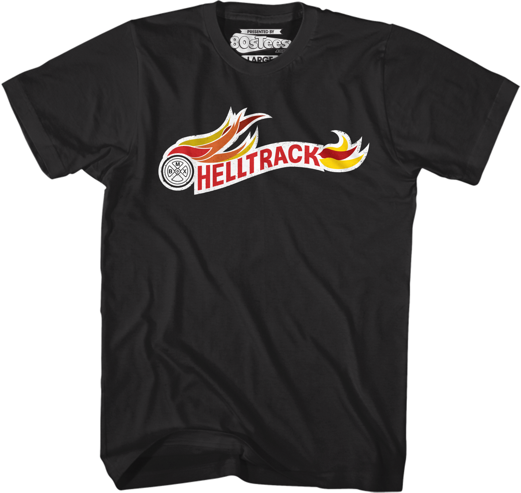 For any fan of the 1986 BMX movie Rad, this 80sTees.com exclusive Helltrack t-shirt is a must have!
