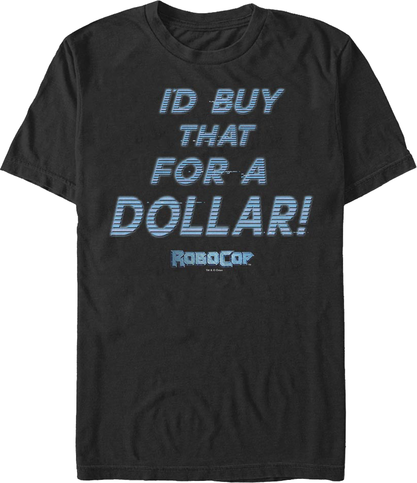 This RoboCop t-shirt features Bixby Snyder's catchphrase, "I'd buy that for a dollar!"