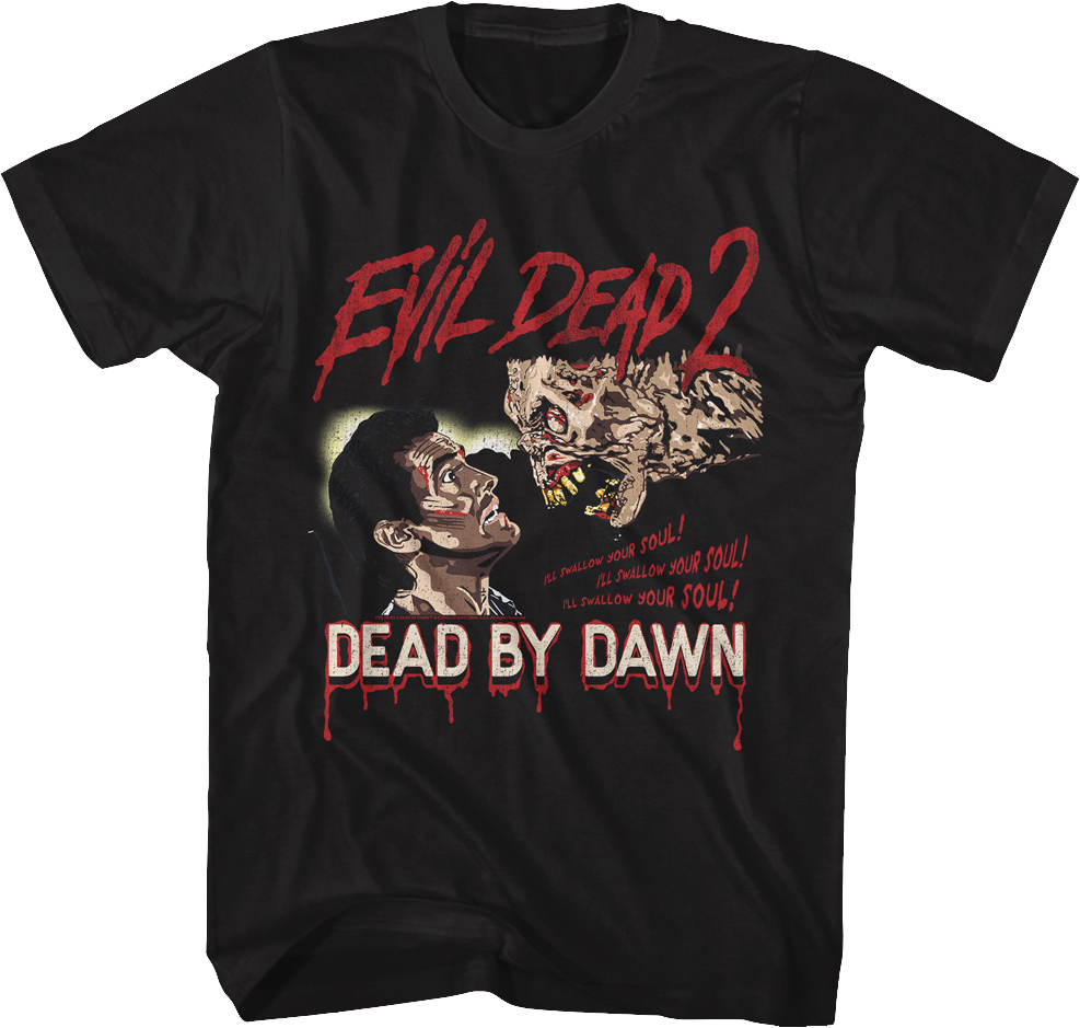 Let everyone know you are a fan of Sam Raimi's 1987 classic starring Bruce Campbell with this I'll Swallow Your Soul Evil Dead T-Shirt!
