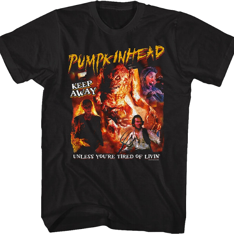 This Pumpkinhead t-shirt features an image of the demon of revenge. The shirt reads "Keep Away Unless You're Tired Of Living!"