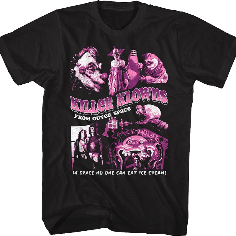 This Killer Klowns From Outer Space t-shirt features a collage of scenes from the 1988 cult classic.