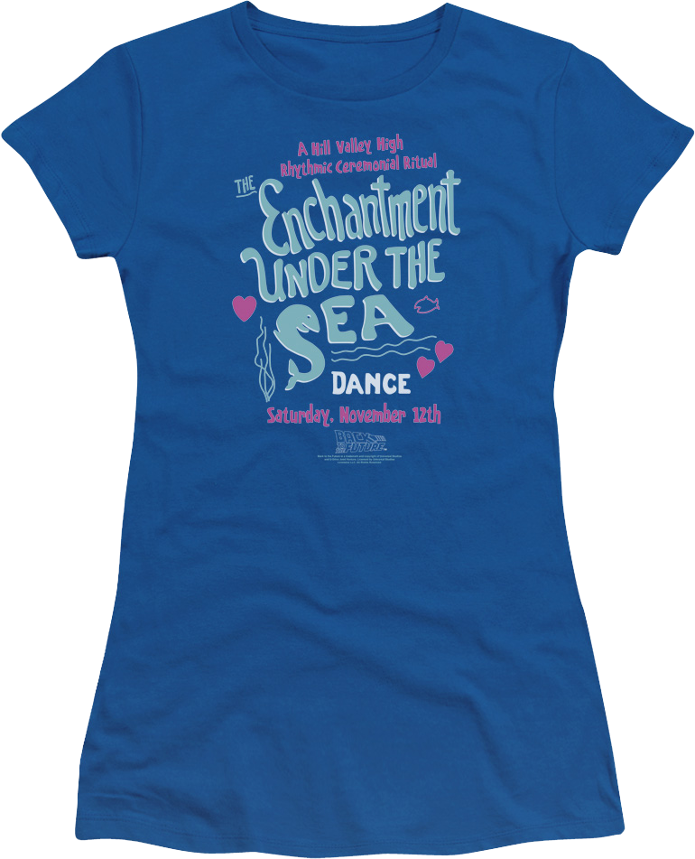 This ladies Back To The Future shirt features the artwork that was seen on the poster for Hill Valley High's The Enchantment Under The Sea Dance.