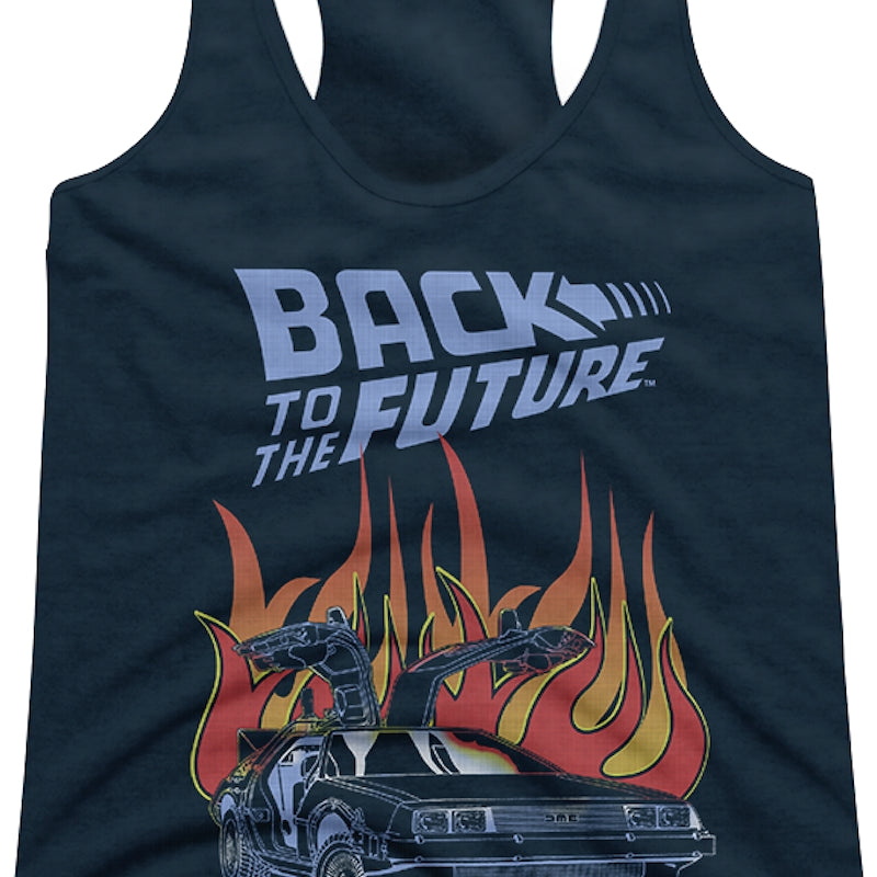 Doc Brown's DeLorean is one of the most iconic cars in cinematic history. Everyone will know you are a fan of the time machine with some style when you wear this Ladies DeLorean Flames Back To The Future Racerback Tank Top!