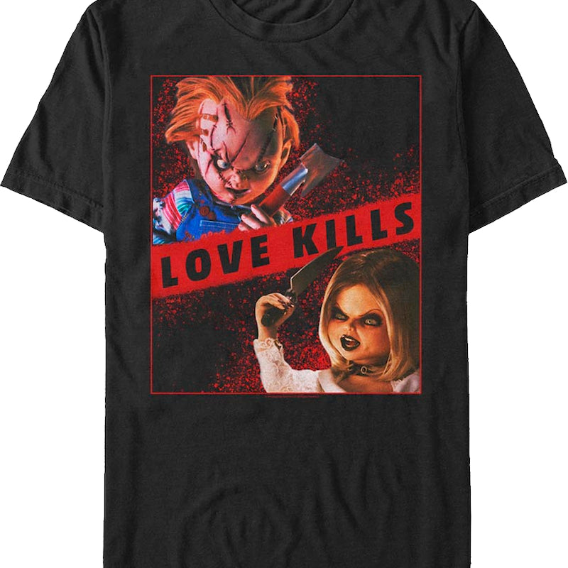 Chucky and Tiffany are the greatest couple in the history of slasher movies. Now, you can show that you are a fan with this Love Kills Child's Play T-Shirt!