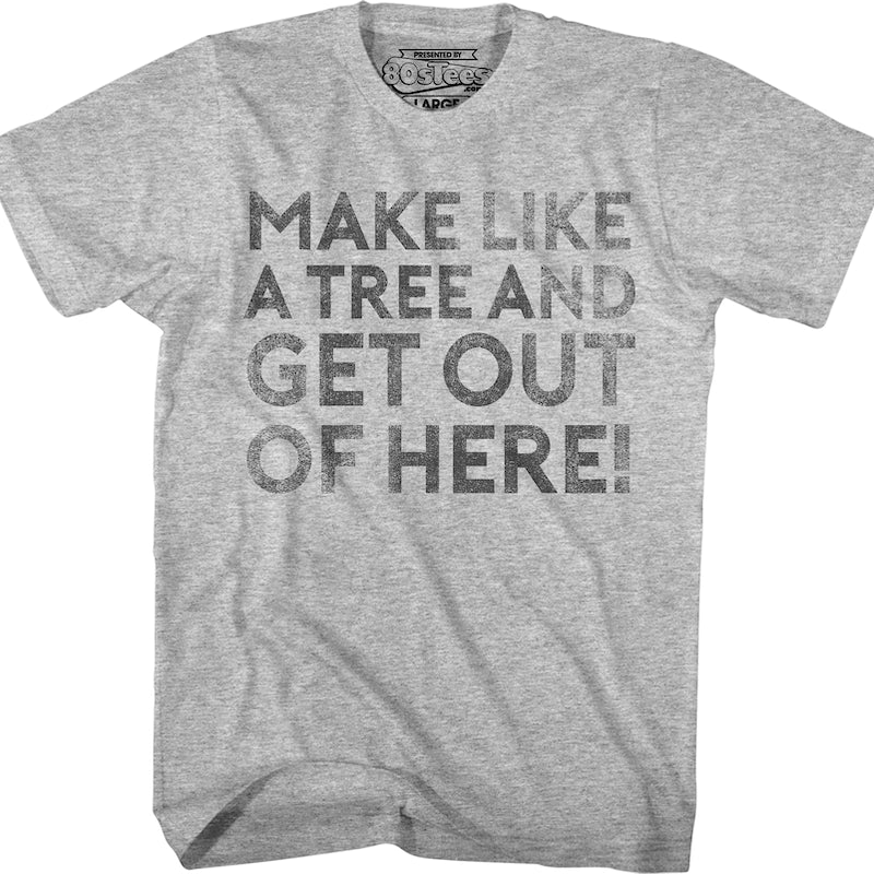 For any fan of the 1985 classic Back To The Future, this 80sTees.com exclusive Make Like A Tree And Get Out Of Here t-shirt is a must have!