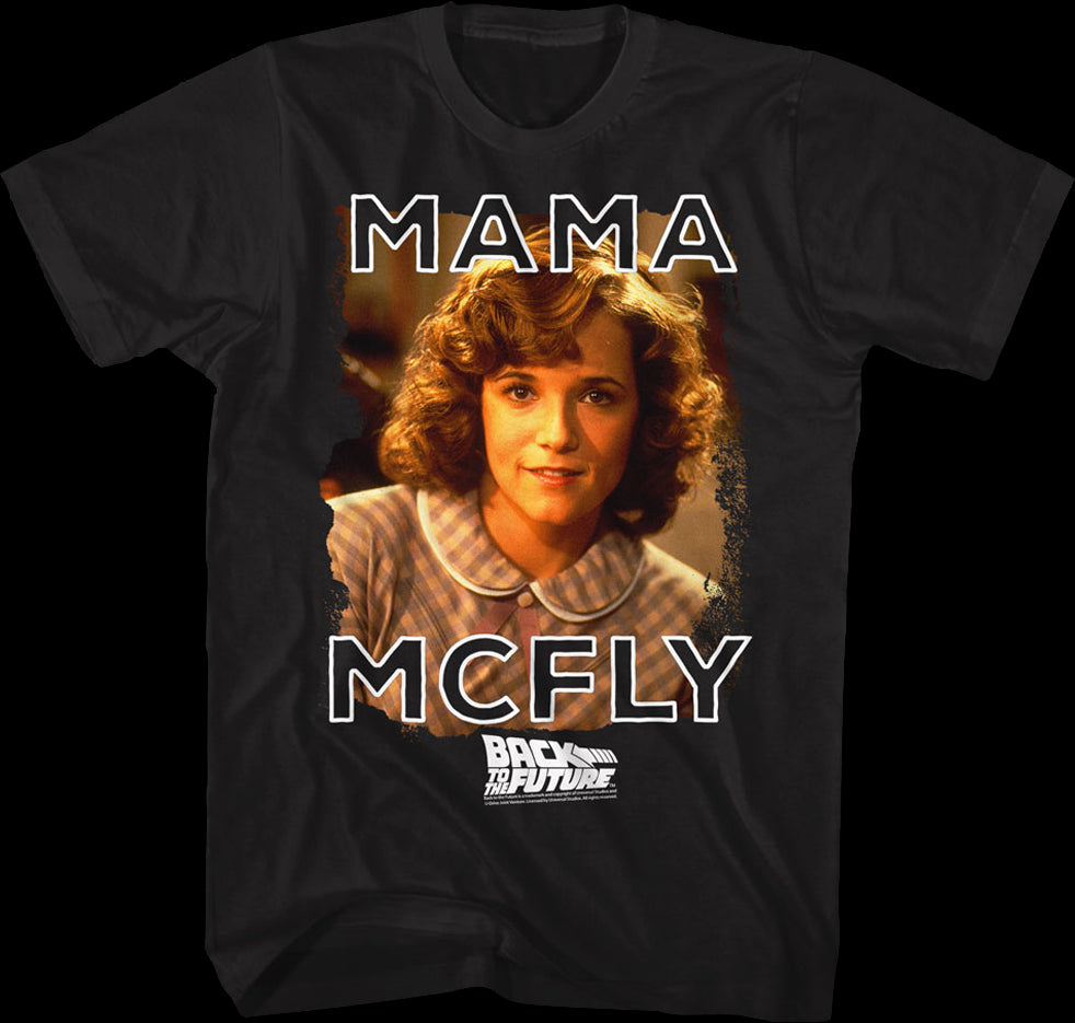 This Mama McFly Back To The Future T-Shirt features a picture of Lorraine Baines in the year 1955. Lea Thompson played this character in three different decades. When Marty traveled back in time, he inadvertently gained the affection of the girl who would end up being his mother. Awkward!