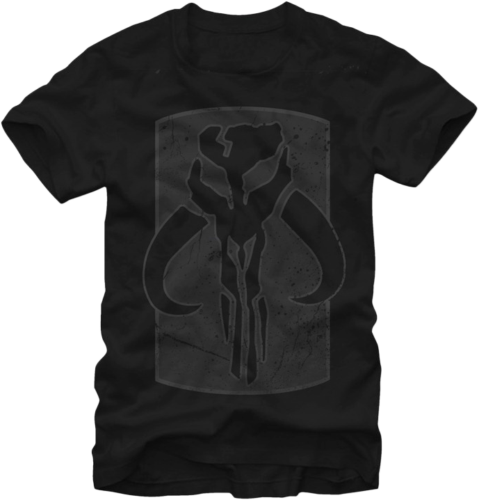 During the Galactic Civil War, a Mandalorian's armor would strike fear in just about anyone in the galaxy. The distinctive armor would feature the war banner that appears on this t-shirt. The most famous Mandalorian that proudly wore this symbol was the feared bounty hunter Boba Fett.