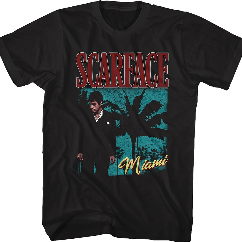 Under Brian De Palma's direction, Al Pacino made Tony Montana one of the most memorable characters in cinematic history. Now, you can show that you are a fan with this Miami Poster Scarface T-Shirt.