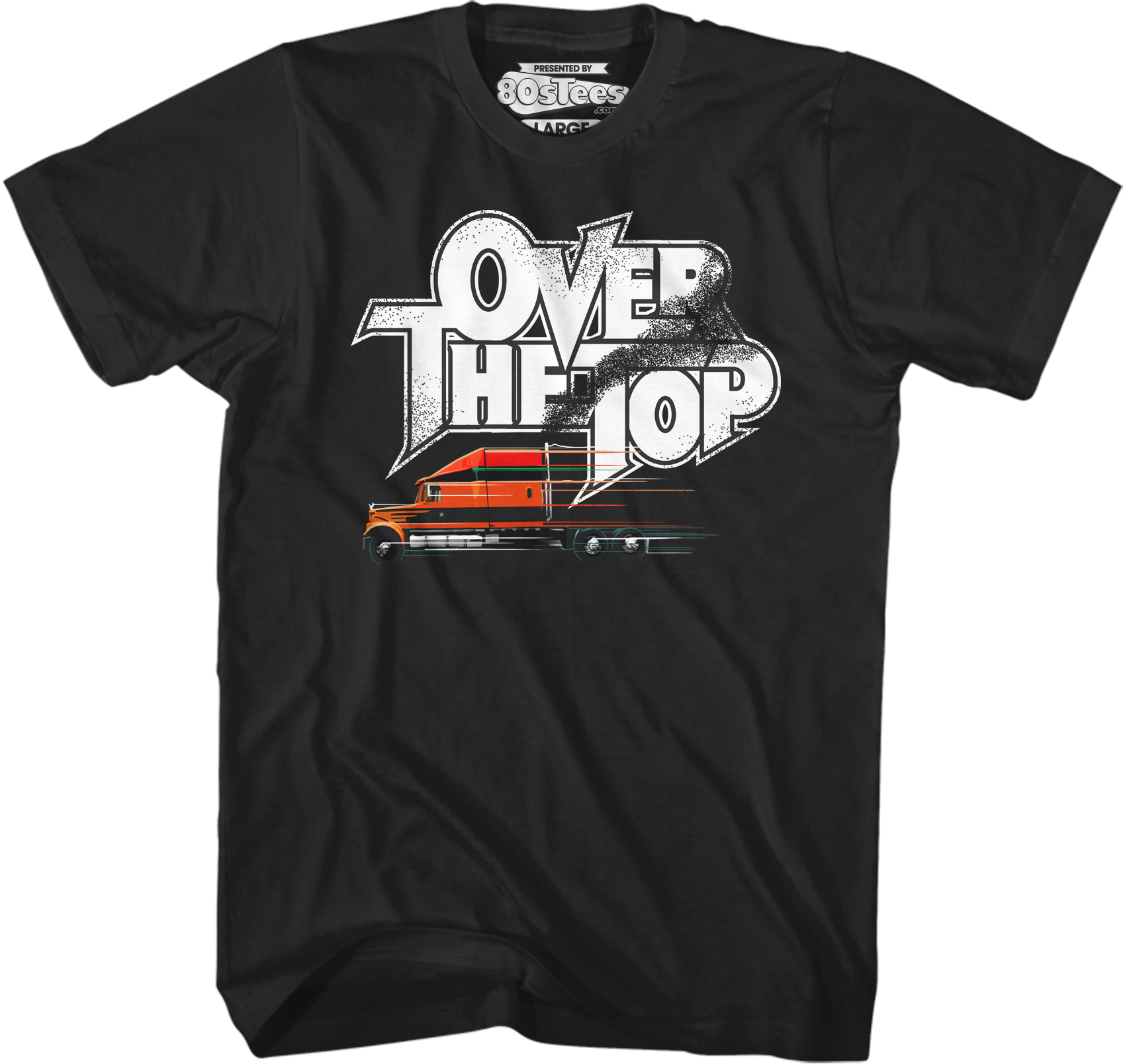 This t-shirt features the logo for the 1987 Sylvester Stallone arm wrestling movie Over The Top.