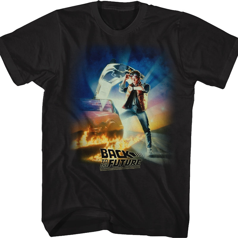 This Back To The Future shirt features the iconic theatrical poster art from the hit 1985 time travel movie starring Michael J. Fox.