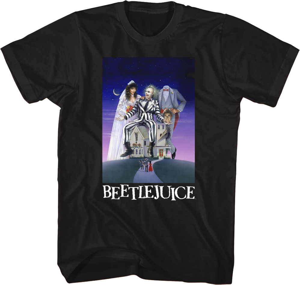 This Beetlejuice t-shirt shows the poster artwork for Tim Burton's 1988 fantasy/comedy.