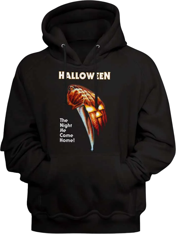 This Halloween hoodie features the iconic poster for John Carpenter's terrifying 1978 classic. The poster shows the knife-wielding hand of Michael Myers in front a Jack-o-Lantern. The hoodie includes the movie's tagline, "The Night He Came Home!"