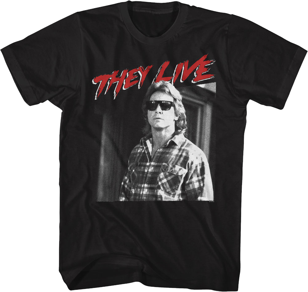 For any fan of John Carpenter's 1988 sci-fi classic starring "Rowdy" Roddy Piper, this Nada Sunglasses They Live T-Shirt is a must have!