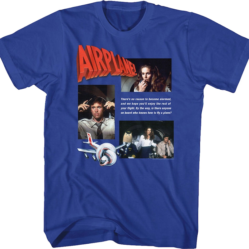 Airplane! is widely considered one of the greatest comedies of all time, and everyone will know you are a fan when you wear this No Reason To Become Alarmed Airplane T-Shirt!