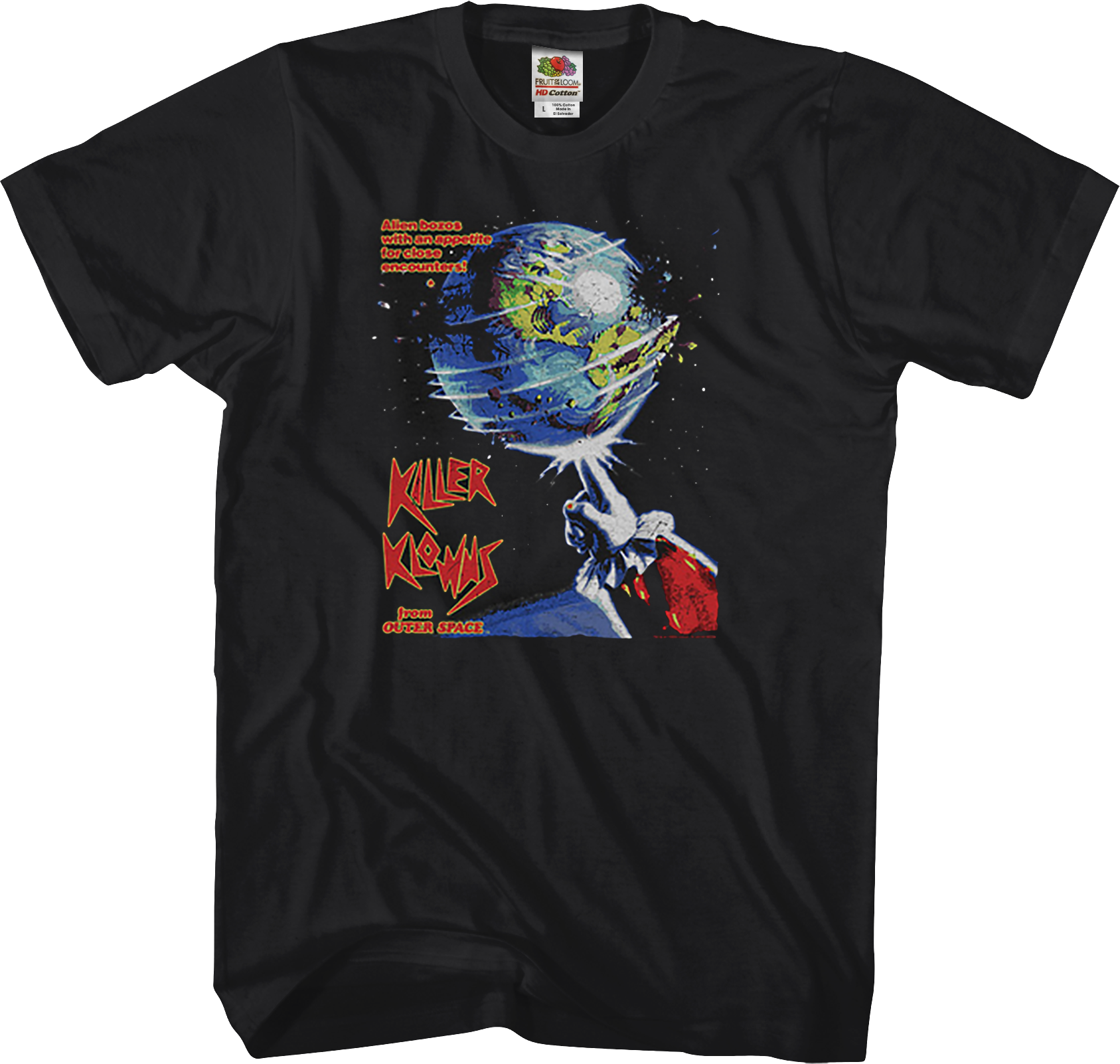 Killer Klowns From Outer Space is the only movie to combine alien clowns, cotton candy cocoons, and popcorn guns all in one fun adventure! Now, you can show your love for the crazy movie with this Killer Klowns From Outer Space t-shirt.