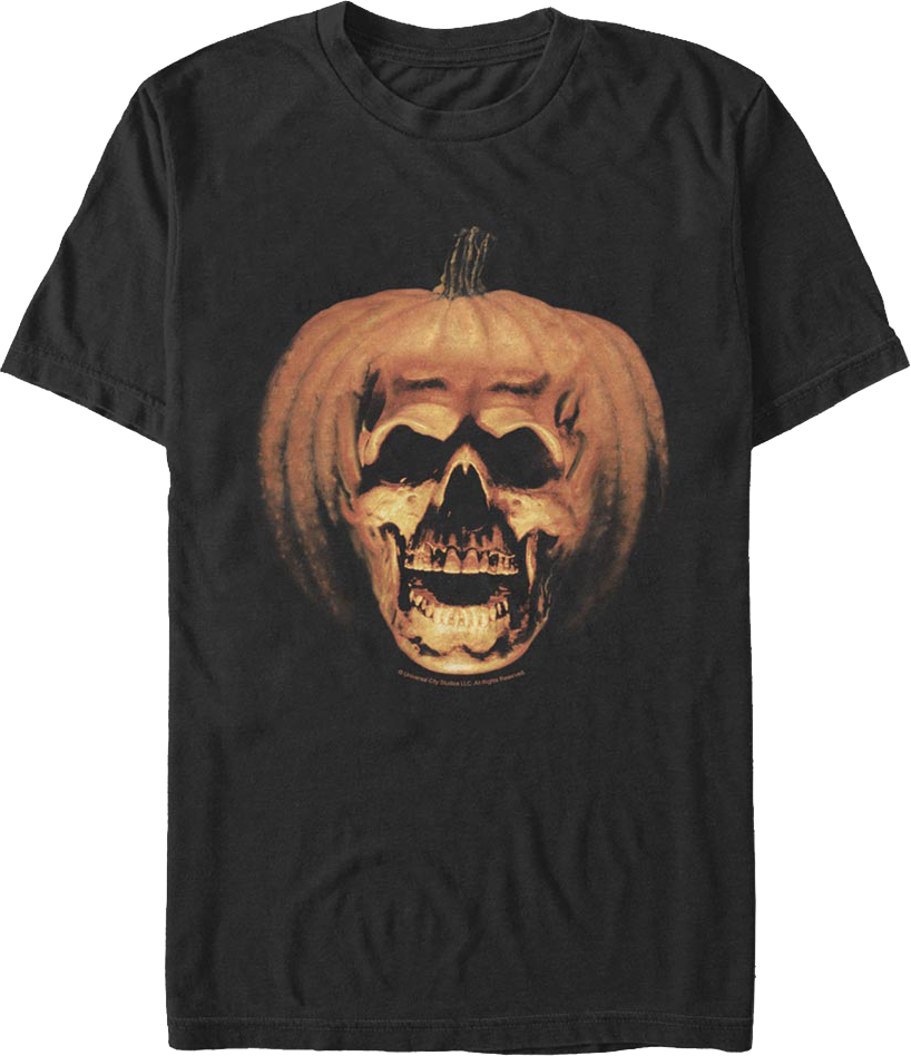 This Halloween II t-shirt shows the skull in a pumpkin that appeared in the opening credits of the 1981 horror classic.