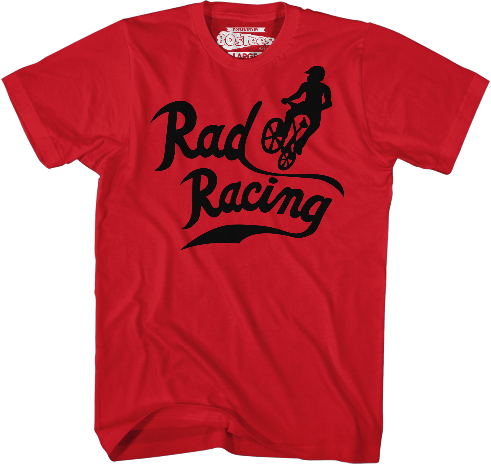 Rad is the 1986 cult classic movie that so many kids made their parents rent over and over again that it was a top 10 rental for 2 years! This Rad Racing t-shirt is the same one that Cru Jones and his friends printed up when they needed to raise money to enter the race at Helltrack. You'll look great in this shirt whether you are bike dancing at the high school gymnasium or just headed out for a day intense BMX racing!
