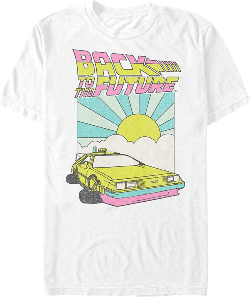 For any fan of the 1985 classic starring Michael J. Fox and Christopher Lloyd, this Retro DeLorean Sunshine Back To The Future T-Shirt is a must have!