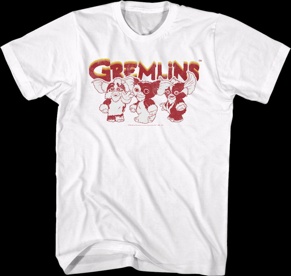This Gremlins t-shirt features the Mogwais Daffy, Gizmo, and Stripe.
