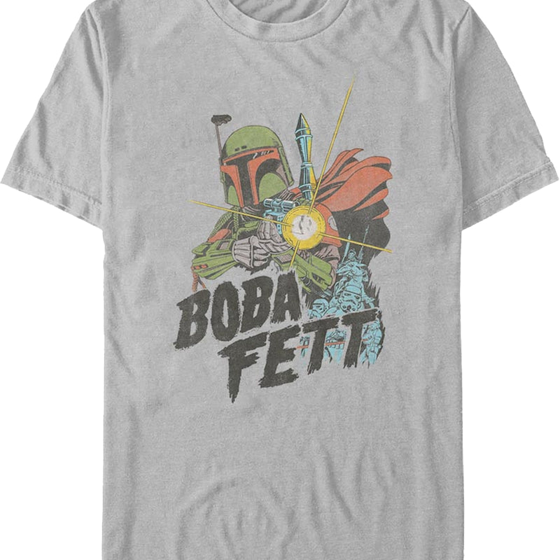 Let everyone know that you are a fan of the classic Marvel Star Wars comic books with this Searching Boba Fett Star Wars T-Shirt!