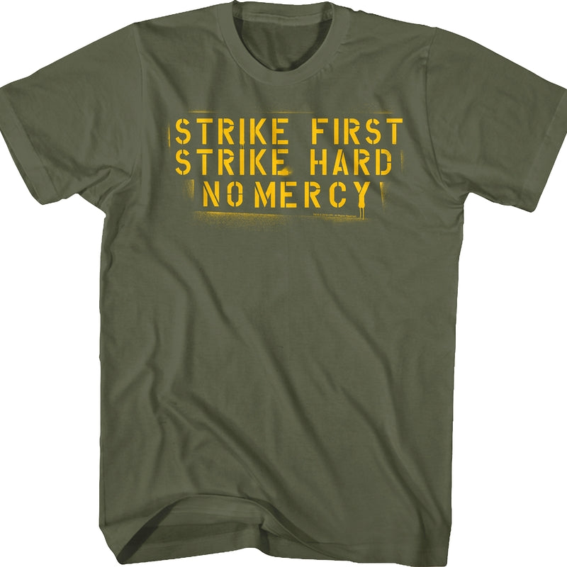 Everyone will know that you believe that mercy is for the weak when you wear this Strike First Strike Hard No Mercy Karate Kid t-shirt!
