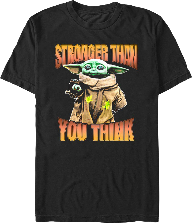 For any fan of Grogu, or "Baby Yoda", this Stronger Than You Think The Mandalorian Star Wars T-Shirt is a must have!