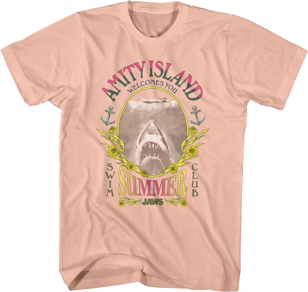 Everyone will immediately know you are a fan of Steven Spielberg's 1975 classic when you wear this Summer Swim Club Jaws T-Shirt!
