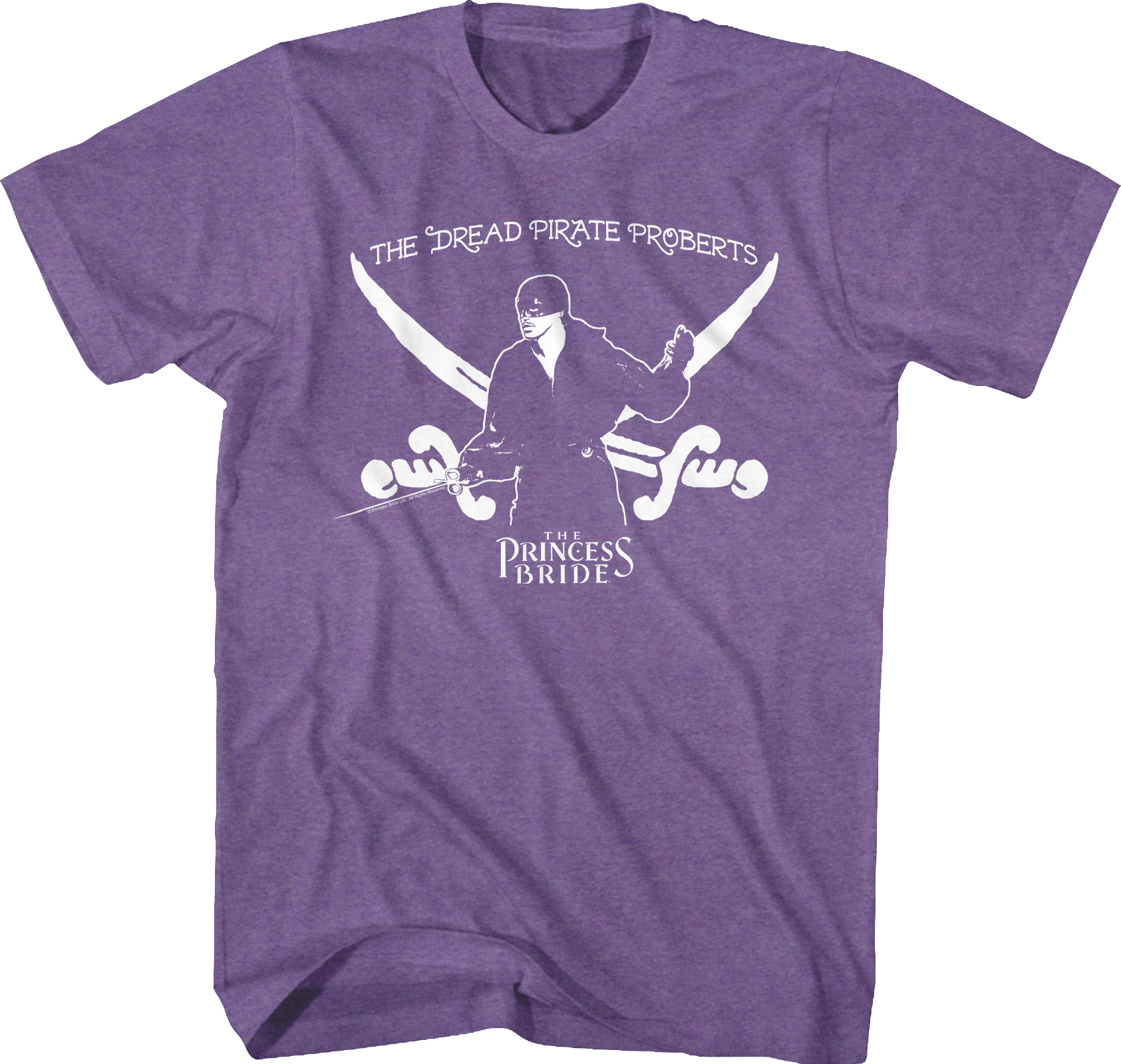 This Princess Bride t-shirt shows Westley dressed as The Dread Pirate Roberts, a role he took on when he was taken aboard the Dread Pirate Roberts' ship, and learned the pirate's secret. The pirate said his name was Ryan, and that he inherited the ship from the previous Dread Pirate Roberts, just as Westley would inherit it from Ryan.